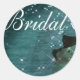 The sticker is made on wonderful paper and had no problem sticking to the bag that I purchased to put it on. I wanted to find a design that would be cute for the bride and groom and this one fit the bill as it has cute "bees" buzzing around and the wedding was taking place in a town called "Bee Cave". The packaging was great and protected the stickers. The website is easy to navigate and there are so many color choices. I had no problem finding a color that the bride was using on everything else selected. The design was adorable and there were many to choose from. You can make the figure as larger or smaller and you can place the photo and writting whereever you want to in the sticker. The printing is fabulous..better than expected.