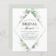 Eucalyptus Greenery Botanical Watercolor and Gold Foil Geometric Spring Wedding Bridal Shower Invitations on white background - includes beautiful and elegant script typography with modern botanical leaves and greenery for the special Bride to Be celebration.