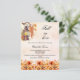 A rose gold, blush pink gradient background. Decorated with a vintage latern and orange flowers. Personalize and add a name and party details.