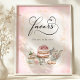 Guide guests with this lovely “Favors – Please Take One” sign, perfect for your tea party bridal shower. Designed with blush pink tones, elegant gold flourishes, and a charming dessert and teapot illustration, this sign adds a polished, vintage touch to your favor table. No customization needed — just display and delight!