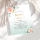 Green and white gradient background. Decorated with a rose gold and blush pink florals, rose flowers and green watercolored eucalyptus leaves, sprigs, greenery and faux gold sprigs. Personalize and add the name of the bride to be and party details. Black and golden colored letters.