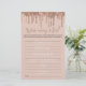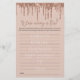 A fun party game for your Bridal Shower with this rose gold glitter drip design. Your guests will write down their favorite memory with the bride to be who will then read it out and everyone guesses whose memory it is. Your name and the date are subtely tinted in the background, overlaid with lines on which your invitees can write their anecdotes. Whose memory Is this is in a set elegant script, and the rest of the text you can easily personalise.