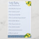 Bridal shower games 20 questions game Amalfi Positano blue tiles and lemons Mediterranean themed bridal shower