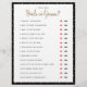 Simple black and white layout with gold polka dots, "Guess Who" questionnaire game with a red lips or black mustache to circle the answer. Make sure to ask the bride and groom the questions beforehand! Backer color is customizable.