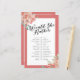 Bridal Shower fun Would She Rather game. Personalize this two-sided game sheet by adding the bride's name and shower date. Please check out the entire collection to see other matching items.