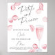Watercolor elegant rose petals with glass of champagne and text "Petals and Prosecco".