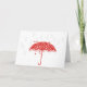An umbrella covered in red hearts and surrounded by silver falling bridal gowns
