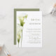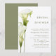 This bridal shower invitation features a sophisticated, minimalist style. Delicate calla lilies in soft green hues are depicted against a light background, creating an atmosphere of sophistication and tranquility. The design is modern, airy, and perfect for a stylish, romantic bridal shower.