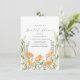 Celebrate with these elegant wildflower bridal invitations, featuring hand painted watercolor flowers in a delicate blend of orange and lavender, accented by lush green botanical leaves. Designed for a bridal shower, these artistic invitations capture the beauty of nature with a boho chic touch.