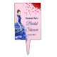 Bridal Shower Lady with Sparkly Blue Gown Hearts Cake Topper