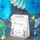 A white background decorated with violet lavender flowers and eucalyptus greenery. With the text: Thank You. Personalize and add a name and date.