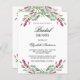 A white background. Decorated with pink lavender flowers and eucalyptus greenery. Personalize and add a name and party details. The name is written with a hand lettered style script.