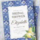 Bridal Shower Lemon Foliage Blue Mediterranean Invitation