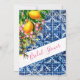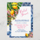 Bridal Shower Lemons Floral Blue White Tile Invitation