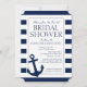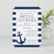 Plain white envelopes are included with paper invitations and will come to fit the invitation size you select. If you don’t need the envelopes, you may choose to not receive them by selecting the dropdown below "Envelopes" and choosing "None." If you’d like to have a design on your envelopes, you can browse all of these available envelopes to find the design that complements your Bridal Shower Nautical Stripes Invitation.