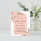 For a modern boho bridal shower. An arch frame, white and rose gold color as background. Decorated with rose gold and pink florals, roses and pampas grass. Personalize and add a name and details.