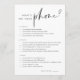 Double sided bridal shower game card features modern minimalist lettering on a white background to coordinate with any theme. Choose professional printing, or select instant download for a digital printable option! Side 1 features "What's on your phone?" with questions about things in guests' phones, with three different point values. Customize the items if desired, or use the design tool to change the colors to match your bridal shower theme. Side 2 features "how well do you know the bride?" with fun trivia questions to answer.
