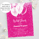 A hot pink background. Decorated with pink confetti and white balloons. White text. Personalize and add a name and party details.