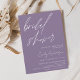 Plain white envelopes are included with paper invitations and will come to fit the invitation size you select. If you don’t need the envelopes, you may choose to not receive them by selecting the dropdown below "Envelopes" and choosing "None." If you’d like to have a design on your envelopes, you can browse all of these available envelopes to find the design that complements your Bridal Shower Purple Script Minimalist Invitation.