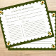 Bridal Shower Recipe Card Elegant Sunflower Green