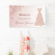 Elegant, classic, glamorous and girly style welcome to the bridal shower banner A rose gold dress with faux rose gold glitter drip. Rose gold and blush pink gradient background. With the text: Bridal shower written with a modern dark rose colored hand lettered style script. Personalize and add the bride's name.