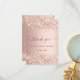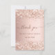 A thank you card for a Bridal Shower. A rose gold background. With faux, sparkles. On front large hand lettered script and the text: Thank You, your text, title and a date.