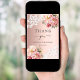 A modern and elegant bridal shower thank you card. A rose gold gradient background. Decorated with rose gold and blush pink roses, florals flowers and lace. On the front the text: Thank You.