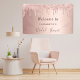 A banner for a girly and glamorous bridal shower. A faux rose gold metallic looking background with an elegant faux rose gold, pink glitter drips, paint drip look. Text: Welcome to and Bridal Shower are written with a large modern hand lettered style script. Template for the bride to be's name. Dark rose gold text.