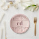 Bridal shower rose gold glitter monogram initials paper plates