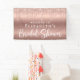 An elegant and chic welcome banner for your bridal shower. Rose gold faux glitter drips down from the top and "Bridal Shower" is written in a stylish white script against a rose gold ombre background. You can easily personalize the bride-to-be's name.