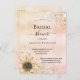 A modern, elegant and bridal shower. A rose gold and blush pink background decorated with faux gold and silver sparkles and a rustic sunflower. Personalize and add a name and party details. Black colored letters.