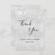 A Bridal Shower thank you card. A faux silver metallic looking background color. With faux glitter dust. On front, a large hand lettered script and the text: Thank You, your text, title and a date.