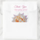 Thank you bridal shower sticker with pink rose flowers.