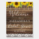 Rustic Farmhouse Sunflower String Lights Lace Wedding Bridal Shower Welcome Sign on Wood background - includes beautiful and elegant script typography with modern Country Farm House Sparkle for the special Wedding day celebration.