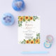 A white background decorated with sunflowers, eucalyptus greenery. Personalize and add a name and party details.