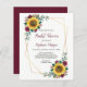 These watercolor bridal shower invitations feature a watercolor floral sunflower and burgundy rose foliage design with faux gold geometric frame. Personalize them with your own text. Please visit our store to see the full range of matching products that you can personalize for your wedding.