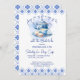 Bridal shower tea party blue tiles tea pot invitation