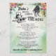 You can't have an elegant bridal shower tea party without a bridal shower menu. We've got you covered with this lovely oversized card that depicts a formal three-tiered serving tray in the background with the traditional three-course menu line items already in place. Easily update the text for whatever you choose to serve at your special event. The top portion shows our lovely bride's head in profile with the traditional teapot and tea cups. Be sure you update the name at the very top too!