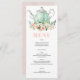 Was looking for a design to match the thence and dresses of the Bridal party, and I just so happen to stumble join Zazzle and this template. It's so BEAUTIFUL!! It was pretty easy to add my text and create what I needed. I do wish I could have moved up the bottom part but it's in a certain size box. I would have also liked the option of multiple colors for various parts of my text, but that wasn't available. Even though there were limitations, these menus came out BEAUTIFULLY! Maybe limitations are the way to go! The paper- heavy stock- is GREAT weight and quality. My shipment arrived in such a timely fashion and well packaged. This is definitely the way to go. You will love the final product. Printing was FABULOUS. IN VERY IMPRESSED