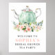 Welcome your friends and family to your bridal shower tea party with this welcome sign. Print or instant download. This design features a beautiful tea pot illustration on pink blooms.