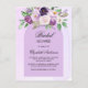 A violet, lavender watercolored background. Decorated with violet and purple flowers. Personalize and add a name and party details. The name is written with a hand lettered style script