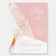 This bridal shower welcome sign features a pink sparking wine bottle spraying gold faux sequins and a bride in her dress and veil holding a glass flute. Change the background color, we show rose quartz pink. MATCHING items in our collection.