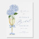 Bridal Shower Welcome Sign | Blue Hydrangea, Bow and Gold Champagne Glass, Brunch Welcome Sign, Digital Download, Editable Template, instant download, editable sign, welcome sign, bridal shower, wedding, watercolor flowers, corjl, blue hydrangea, flowers in a glass, champagne glass, hydrangea blooms, tying the knot, blue watercolor bow. bridal shower, welcome sign, blue hydrangea, bow, gold champagne glass, wedding decor, floral design, elegant signage, party decorations, customized prints