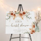 Celebrate the bride-to-be with this personalized rustic terracotta floral bridal shower welcome sign, perfect for setting the tone at your special event. Featuring warm earthy tones, boho pampas grass, soft eucalyptus greenery, and romantic watercolor roses, this sign blends modern elegance with a whimsical country charm.