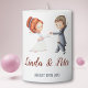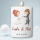 Cute and unique pillar candle for your wedding decorations. Personalize the text with your own information or message. The illustration represents a bride and a groom dancing. Illustrated and designed by Patricia Alvarez. Coordinated products available in my store.