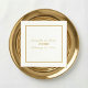 This elegant wedding accessory features the bride and groom's names in stylish calligraphy, a romantic wedding date, and a bold last name in modern typography all framed by a chic printed gold border. The minimalist layout delivers a luxury feel for wedding receptions or dinner parties, offering plenty of space to personalize names, date, fonts, and background color. Perfect for adding a refined touch to any celebration, this design combines simplicity, romance, and sophistication. Please note the gold is printed color.