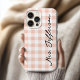 This Peach Gingham Personalized iPhone Case is the perfect gift for brides, newlyweds, bridesmaids, besties, teachers, and anyone who loves the cozy peach-plaid aesthetic. Add a name, monogram, or “Mrs & Mr” for a truly custom touch. The soft peach checkered design makes it a sweet and timeless choice for weddings, bachelorette parties, bridal showers, anniversaries, and everyday gifting. Made to fit the latest iPhone models, this case offers full protection with a stylish, modern look. Whether you're shopping for a husband and wife gift, wifey and hubby gift, wedding keepsake, birthday present, teacher appreciation gift, or graduation surprise, this case is a beautiful and practical pick.