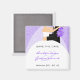 Trendy Save the Date magnets, with a bride and groom on a purple swirl background Add your information in our easy-to-use template, or click "customize" to edit text. Image © JD Digi Designs