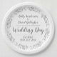Bride and Groom Wedding Reception Paper plates with the names of the happy couple as well as rte date of the wedding.