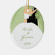 Bride and Groom ornament with the names and wedding date, on a margarita green swirl background. Perfect for your first Christmas as a married couple! Great gifts for newlyweds!